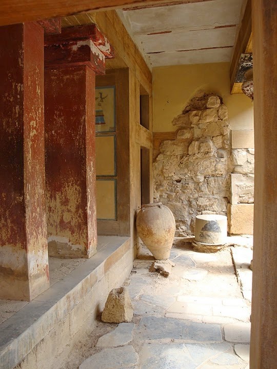 La sensación que producen los palacios minoicos es la de un laberinto: los pasillos que conducen a las dependecias reales y principales tienen forma de zigzag; las escalinatas no son rectas, sino que frecuentemente son en forma de curva con lo que el visitante era conducido a sus dependencias o a las dependencia reales por un camino indirecto dando un rodeo; al mismo tiempo las dependencias del palacio y las casas de la ciudad se aglomeran y agolpan al modo neolítico, recordando en muchos casos los callejones y callejuelas de los poblados árabes. La leyenda del laberinto se relaciona con el palacio de Cnosos y la disposición de las distintas habitaciones, antesalas, vestíbulos y corredores en el que un visitante extraño fácilmente se perdía.